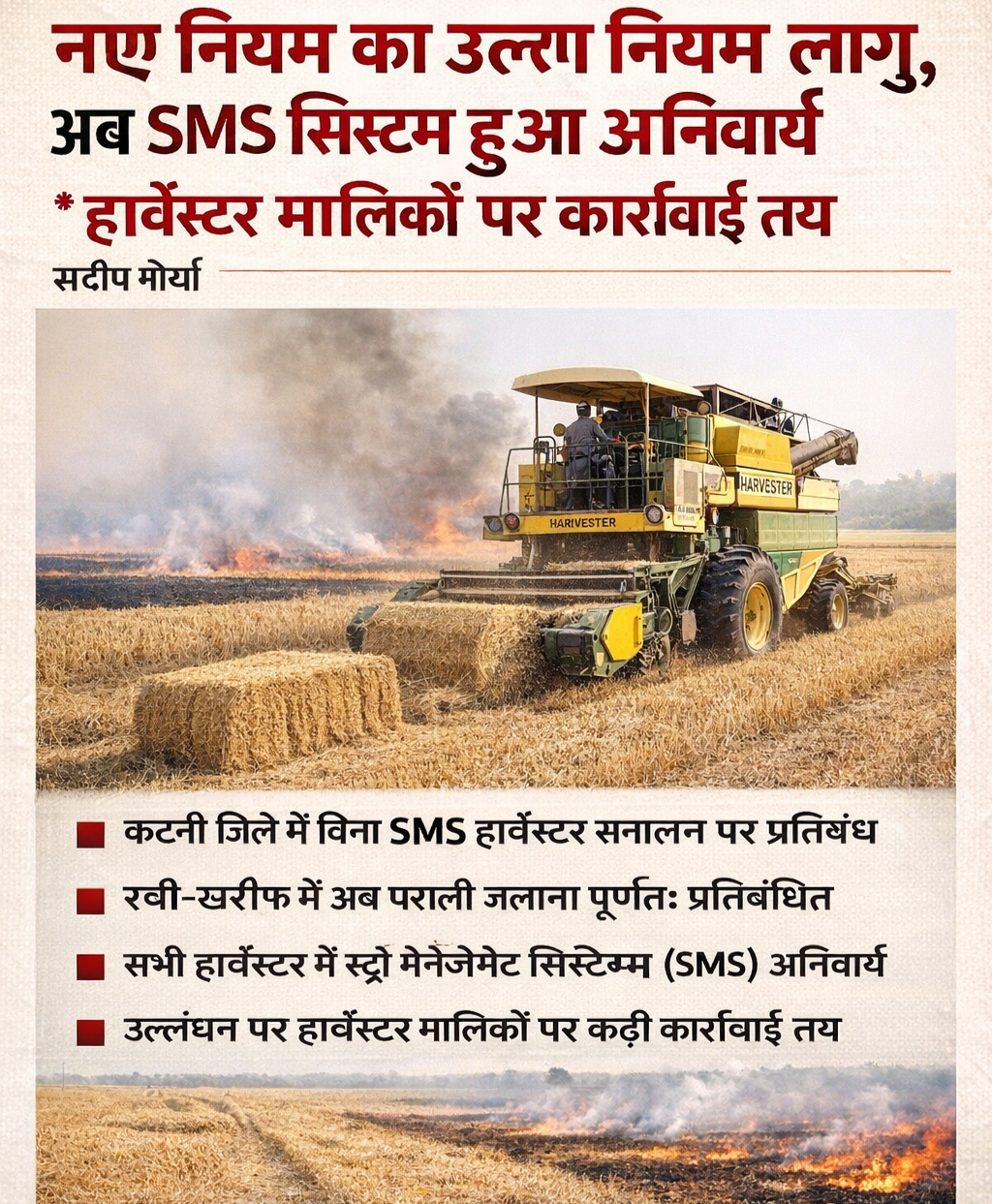 फसल कटाई के नए नियम लागू, अब SMS सिस्टम हुआ अनिवार्य, हार्वेस्टर मालिकों पर कार्रवाई तय